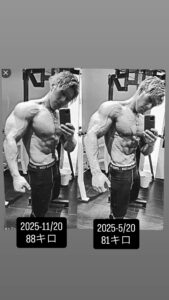 体調は優れないことが多いですが、トレーニングと筋肉の調子はとても良いです。今年はコンテストに出た事もあってかなり良い感じでインプルーブ出来ております。